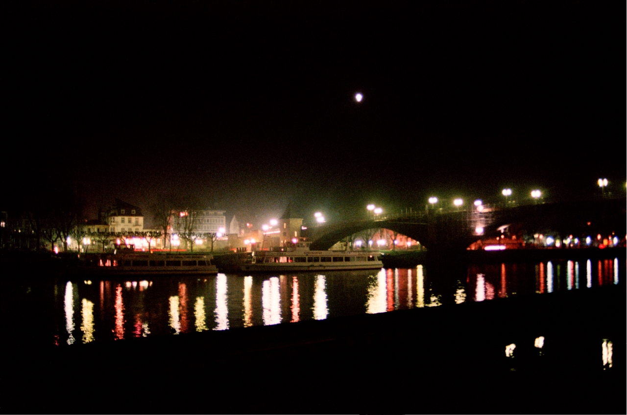Kytkimme viimeisenkin varalämmittimen päälle (200w pakkasvahdin) joka on asennettu keulakabyysiin jossa nukumme. Sade yltyy päätämme kuitenkin lähteä liikenteeseen mutta pysähdymme nopeasti Cochem Cond kaupungin satamaan aivan joen varteen. Satama on yllättävän rauhallinen sijainnistaan huolimatta. Sade loppuu illan suussa ja kaupunki joen rannalla on varsinainen turistirysä hienoine liikkeineen ja ravintoloineen. Saan vastarannan maisemasta hienon yökuvan joka myöhemmin voi olla näyttelykelpoinen.