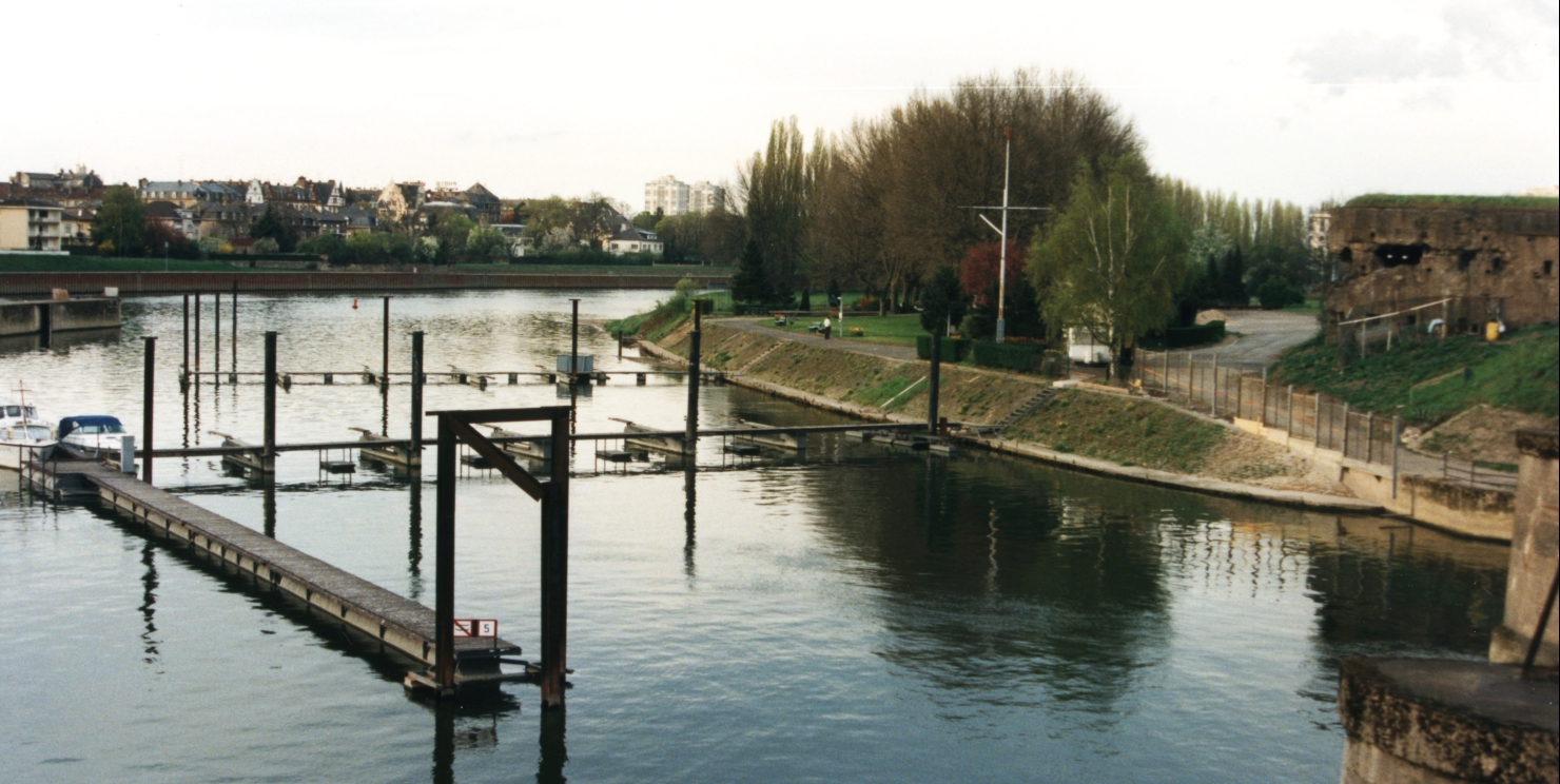 Edessämme on kolme sulkua(Ecluse kun kieli vaihtuu). Maisemat muutuvat Thionvillen teollisuudesta kauniimmaksi, kesämökkejä sekä pieniä laitureita kanavan rannalla. Jokialukset ajavat 5-6s nopeutta joten aaltoja ei synny niinkuin Rheinillä. Metzin kaupungin venerannalla on mainos! Ensimmäinen näkemämme. Kapea ränni johtaa pursiseuran kauniiseen satamaan.