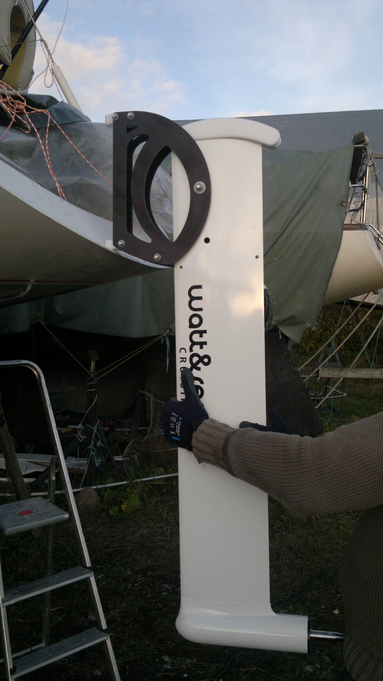 The rudder was given a few inches more in length. The new stern is going to be built less open to avoid breaking seas falling to the stern, which can affect negatively to the stability.