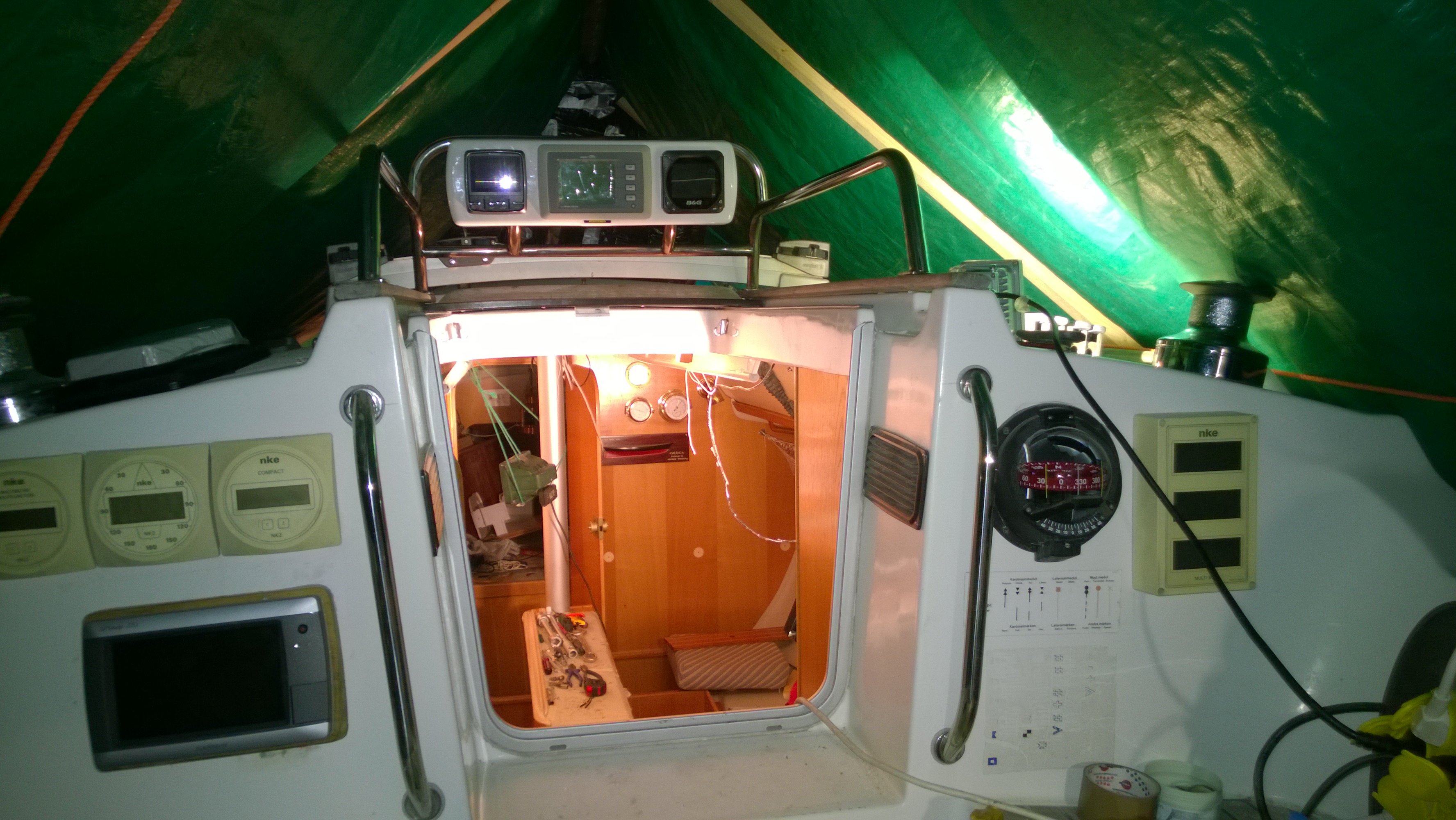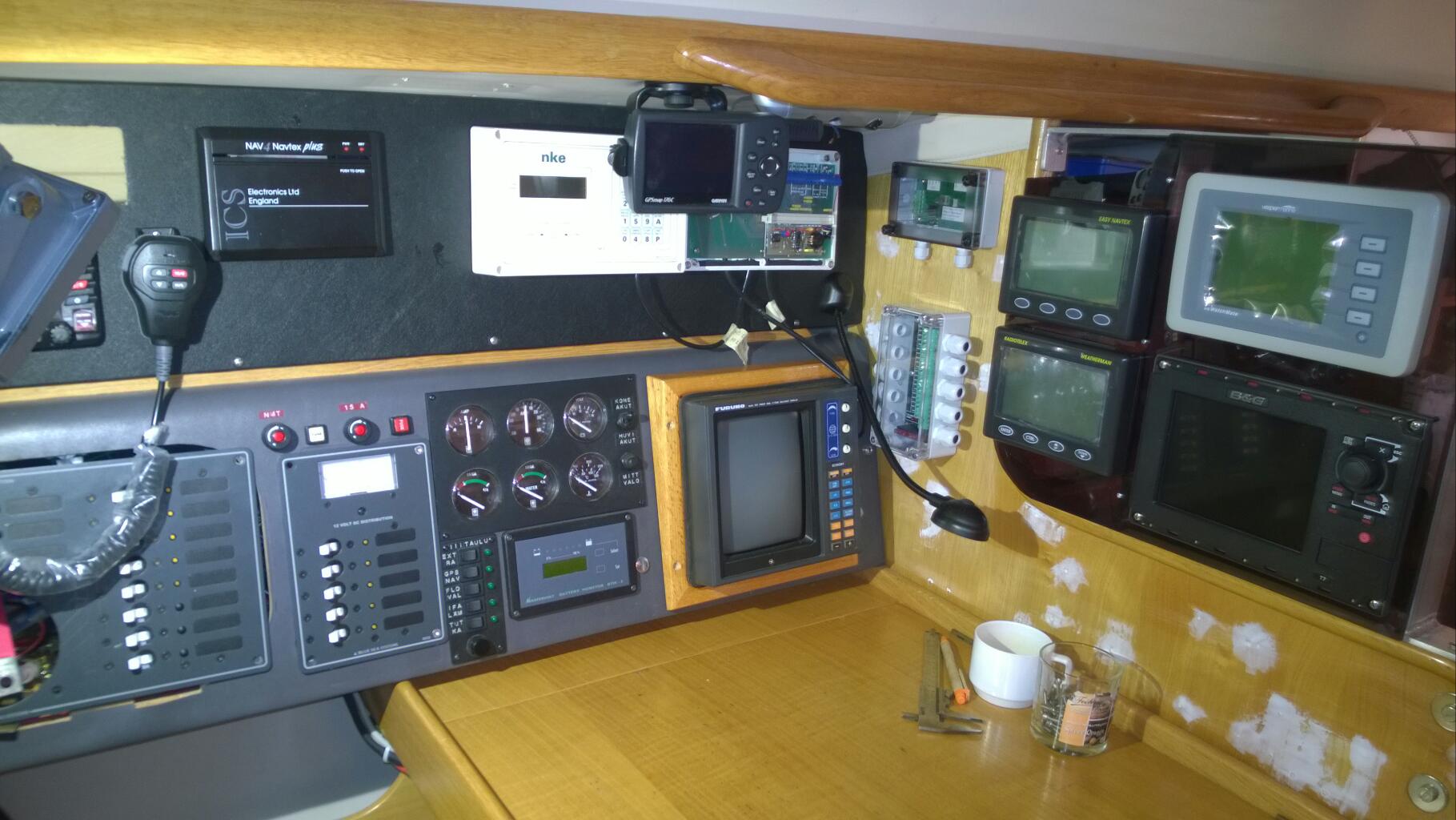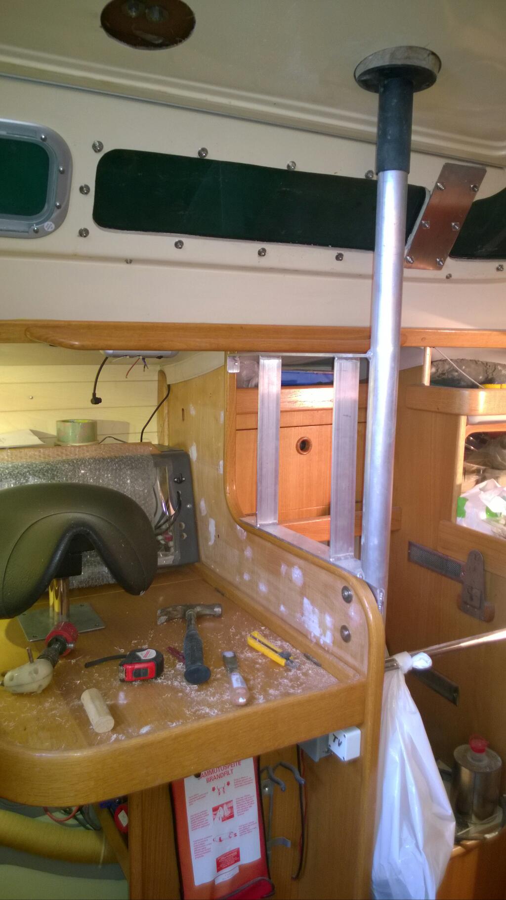 This is not going to be a Joy Ride although building boats is always fun! I have 60 days to get the Boat ready for the big adventure. 60 days to Rock and 40 demanding tasks to be fulfilled. The spring has just started and the temperatures are suitable for building outdoors. That is good because my shed is so full of various fittings that something must go out. A lot have been done during the dark winter months, glass fiber parts, stainless fittings, wooden details etc. Yesterday my job was to polish and attach one of the instrument panels to a Stainless fitting going around main hatch. Some things done under the dark winter nights in my shed to be prepared for the early spring working sessions.
