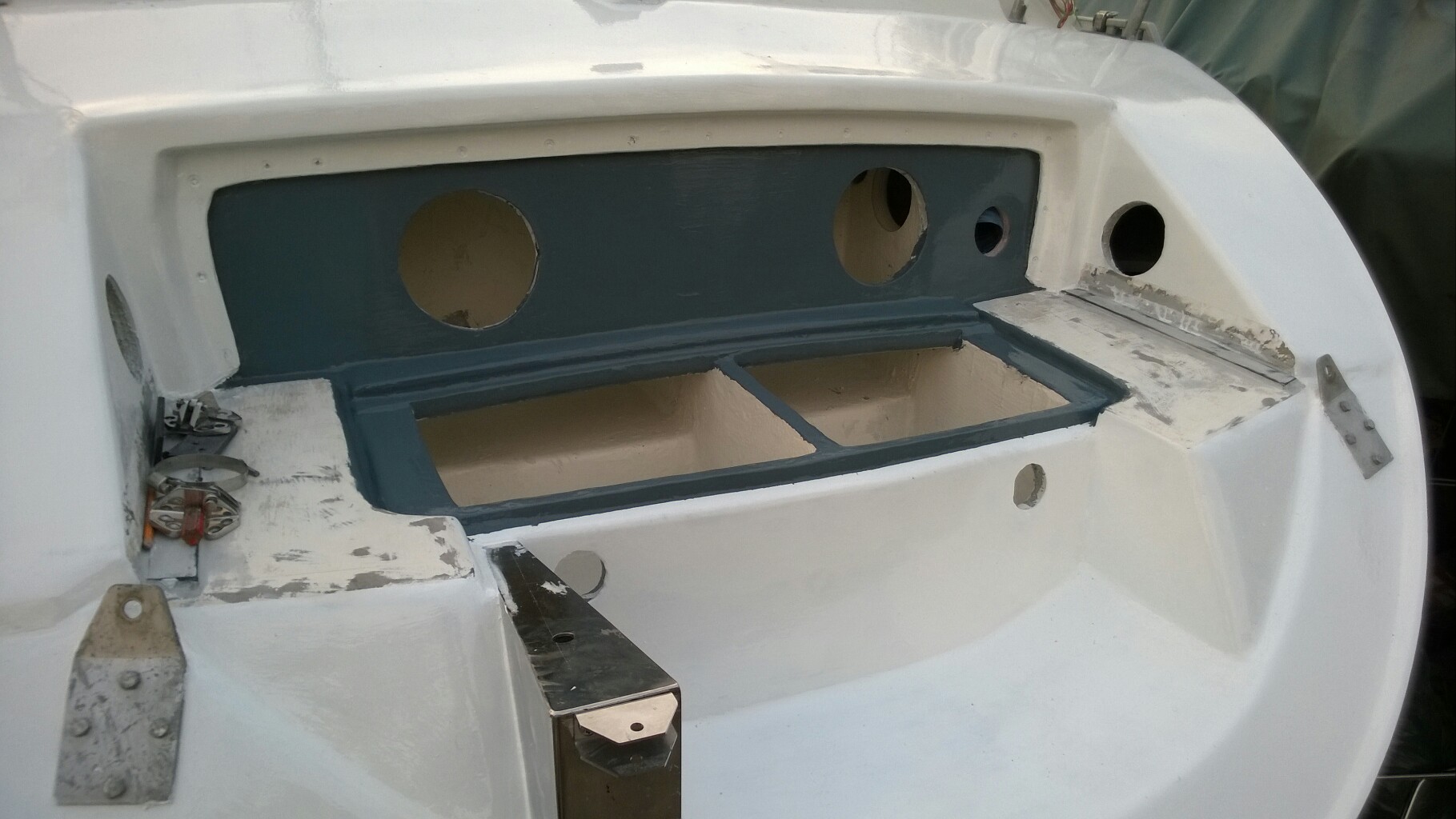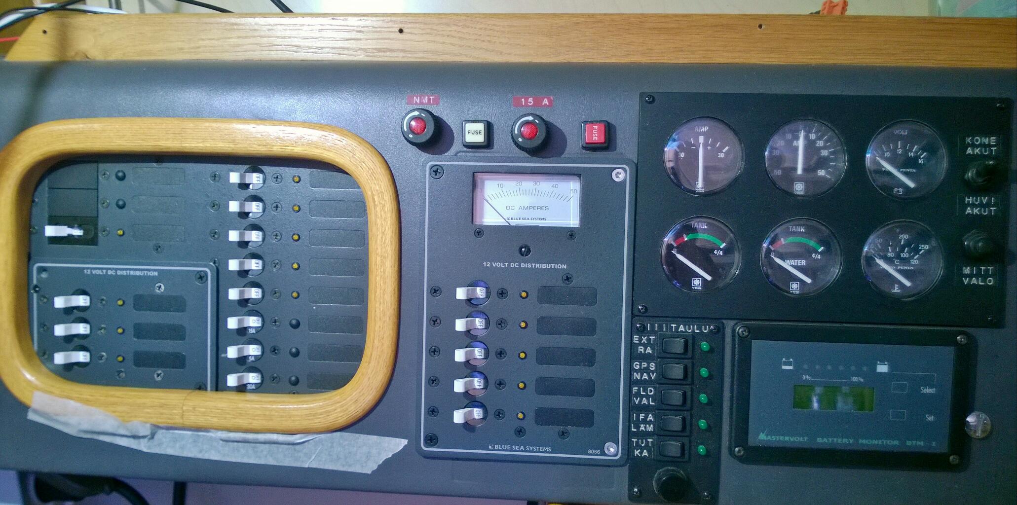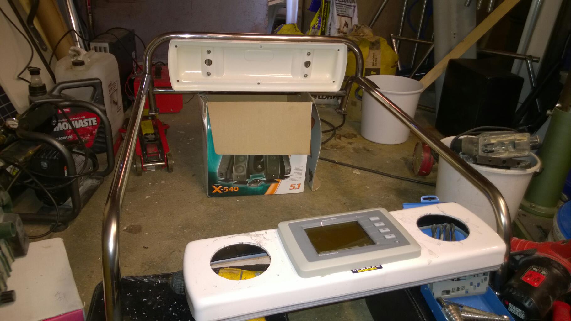 This is not going to be a Joy Ride although building boats is always fun! I have 60 days to get the Boat ready for the big adventure. 60 days to Rock and 40 demanding tasks to be fulfilled. The spring has just started and the temperatures are suitable for building outdoors. That is good because my shed is so full of various fittings that something must go out. A lot have been done during the dark winter months, glass fiber parts, stainless fittings, wooden details etc. Yesterday my job was to polish and attach one of the instrument panels to a Stainless fitting going around main hatch. Some things done under the dark winter nights in my shed to be prepared for the early spring working sessions.