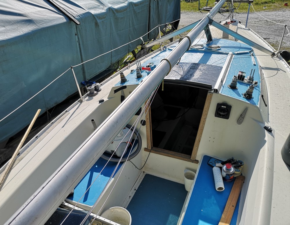 Some activities done with an old project to get my Express sailing boat refurbished. Designed by Peter Norlin. The job had been started in earlier years with the hull repairs and new keel stocks etc. This year was excellent timing for the rest of the job. I could not travel to the Canaries where I have my sailing yacht. Something can still be done when the Corona virus is howling around the globe. Gardening works had been done already in the spring time and real estate business was also slowed down because of the disease. So let’s get sailing in the home waters!