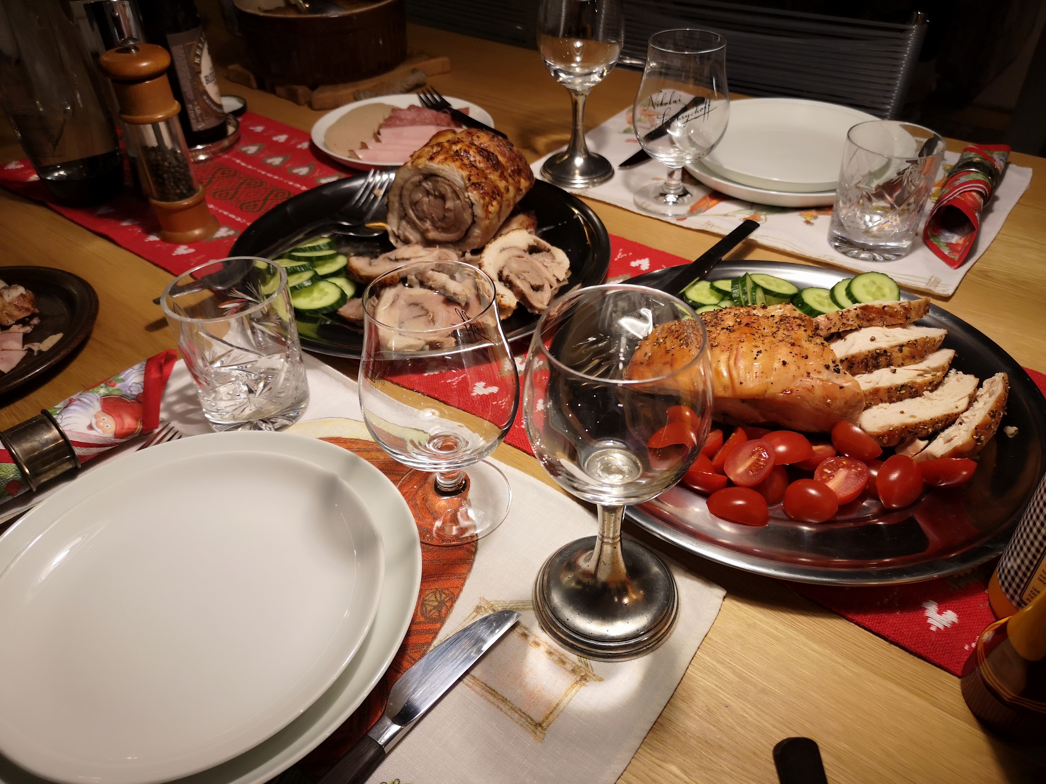 For our indepence day we made an old traditional Karelian menu “Karelian Hot pot”. Meat stew again slowly cooked in the clay pot and vegetables. Champagne and good wine.
