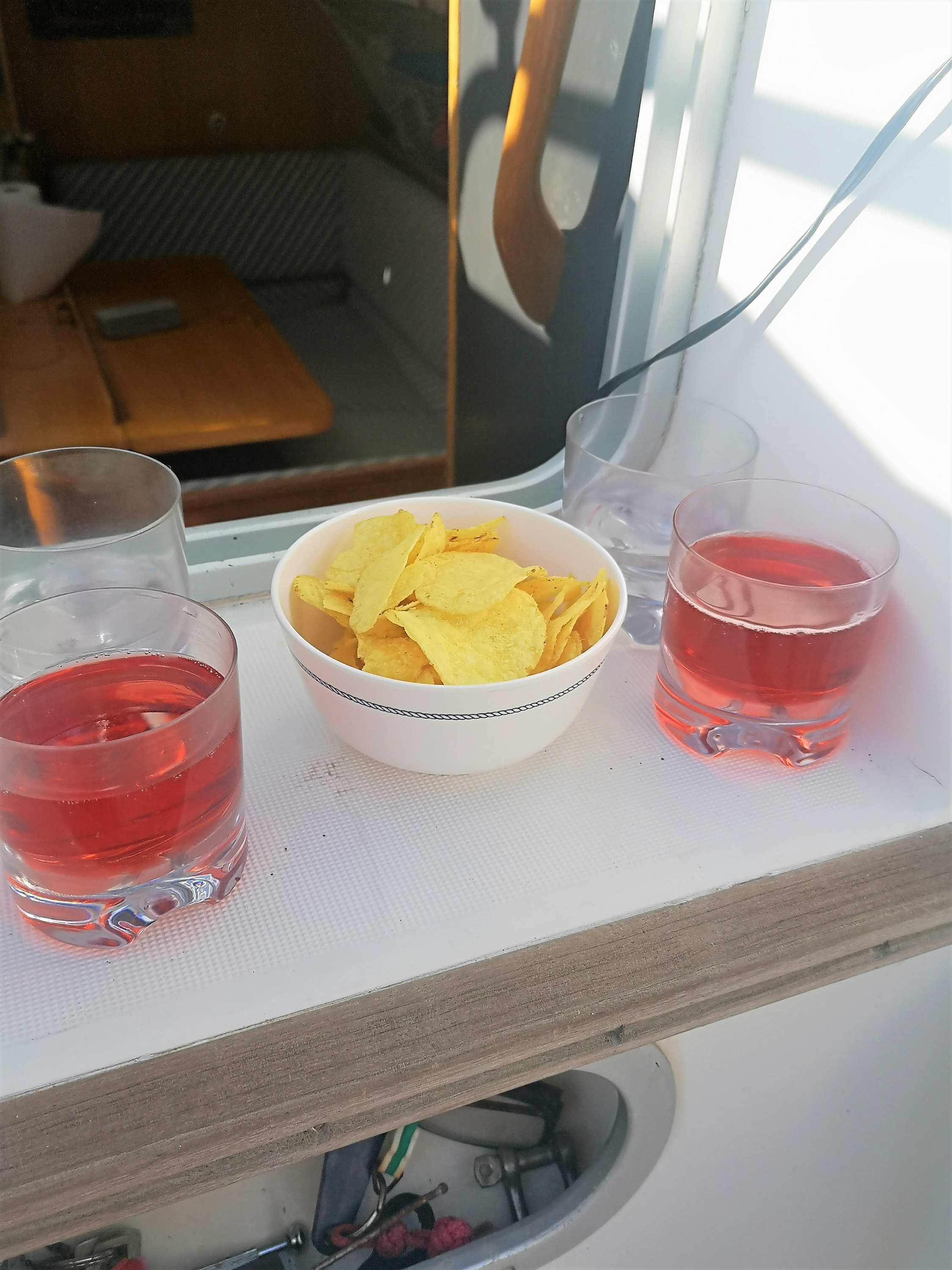 Dinette of S/y Naneux, alias Atlantic Navigator. Many gourmet dinners in Tenerife.