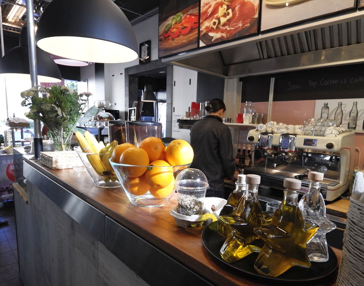 We have our beautiful barista Jovita who makes Italian food taste so good, fresh salads antipasto, Italian type meat, Salmon and of course Panini bread. Eero taking care of the customers and selling Italian specialities from the shelves, here in Better Café