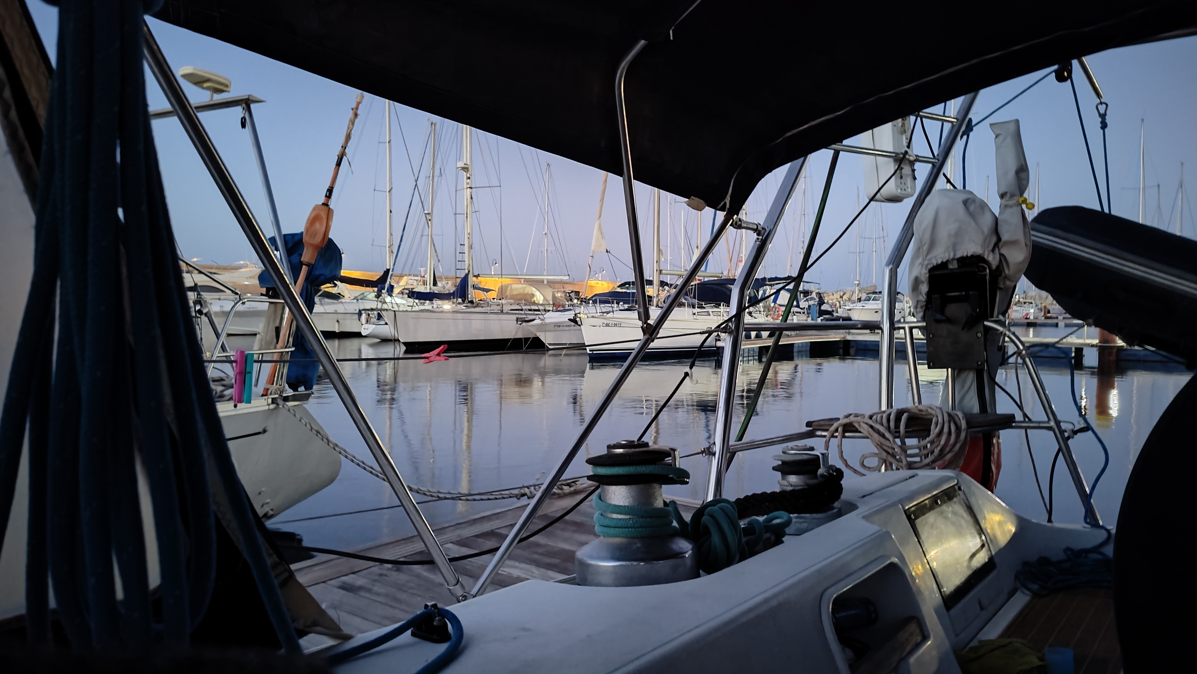 Acclimatize to the heath of the South of Tenerife. Starting with washing the boat from the sand of the Calima. Better to do it after six o’clock in the afternoon when it is somewhat cooler. I try to be ready before the darkness falls at 9 pm.