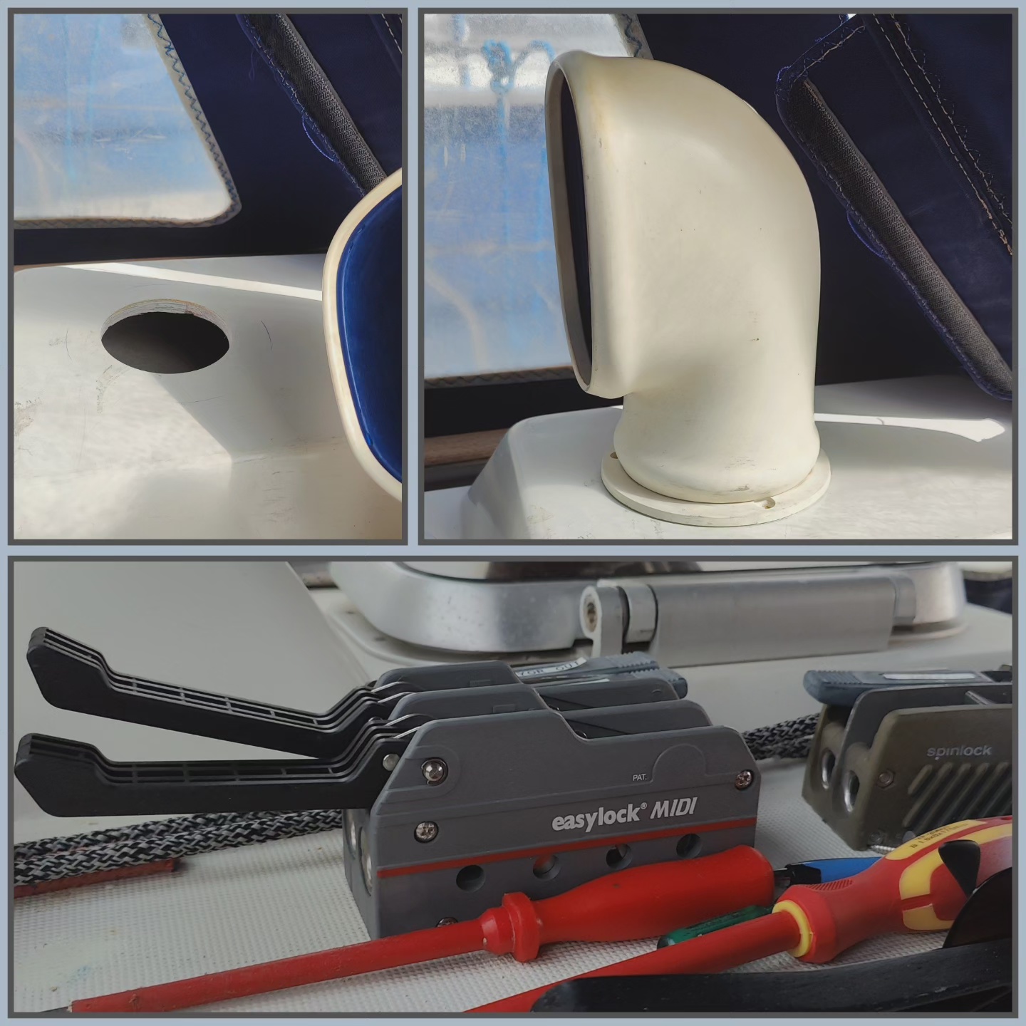 First I have to install a few Dorado boxes to get humid air out of shower cabinet and the main salon. Inside the boat the temperature is somewhat reasonable during the mid day heat, 28 – 32 celsius.