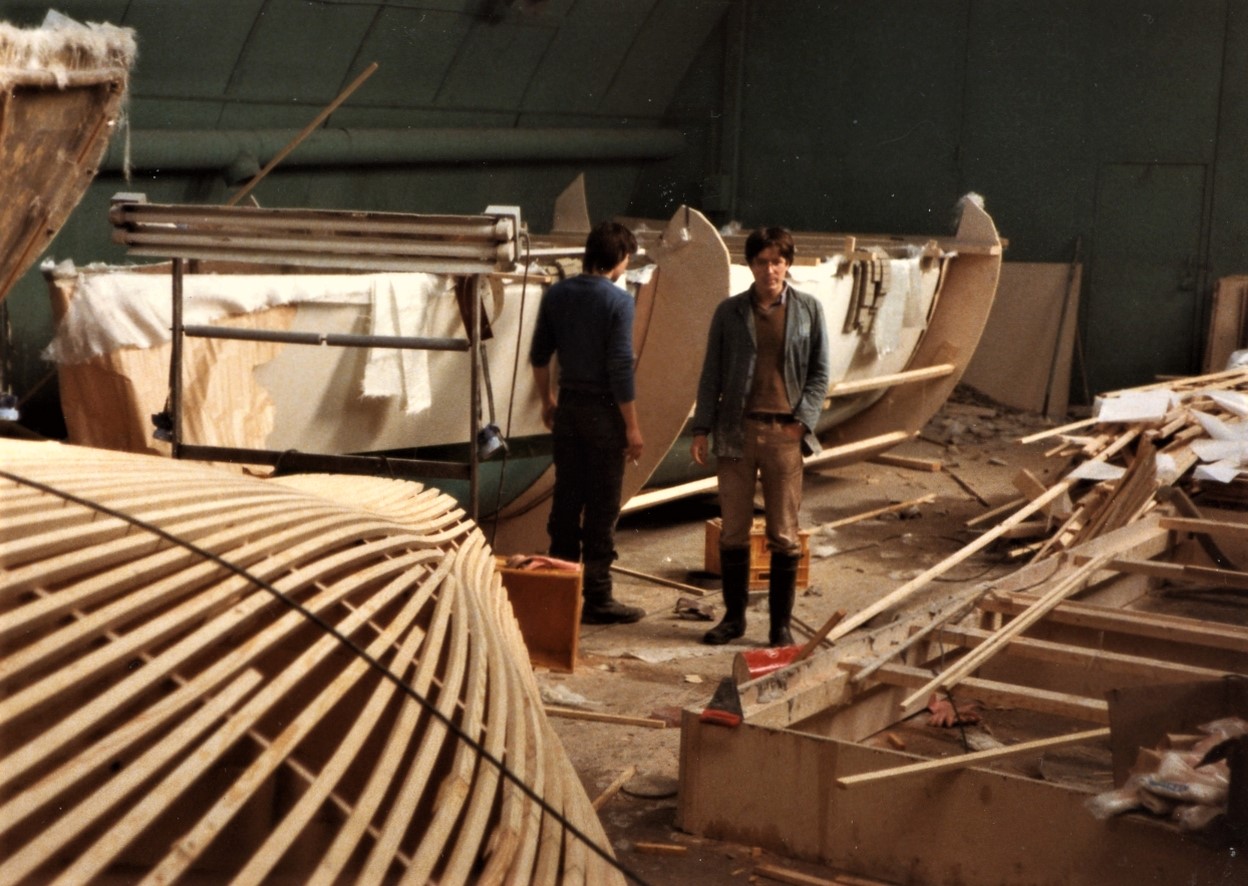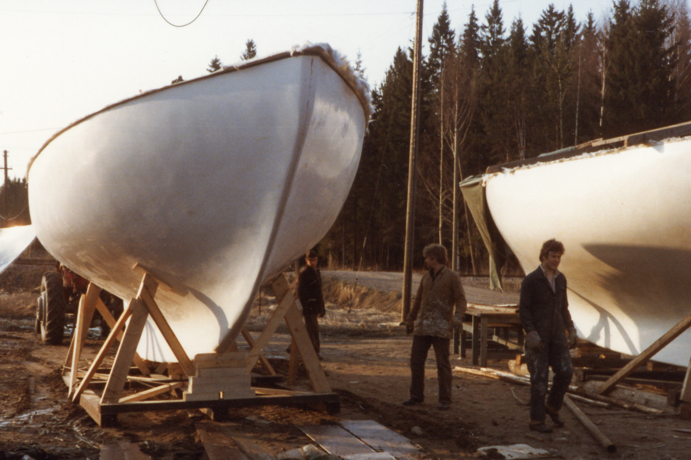 Framboat started its existence in the year 1979 in an industrial suburb in Helsinki, Tattarisuo. We made 4 Colin Archer type 33 bare hulls with Pekka Piironen, in one small sheet metal arch hall. The hall was originally meant for truck service. It was inexpensive, warm and suitable for us, we divided the space with plastic curtains.