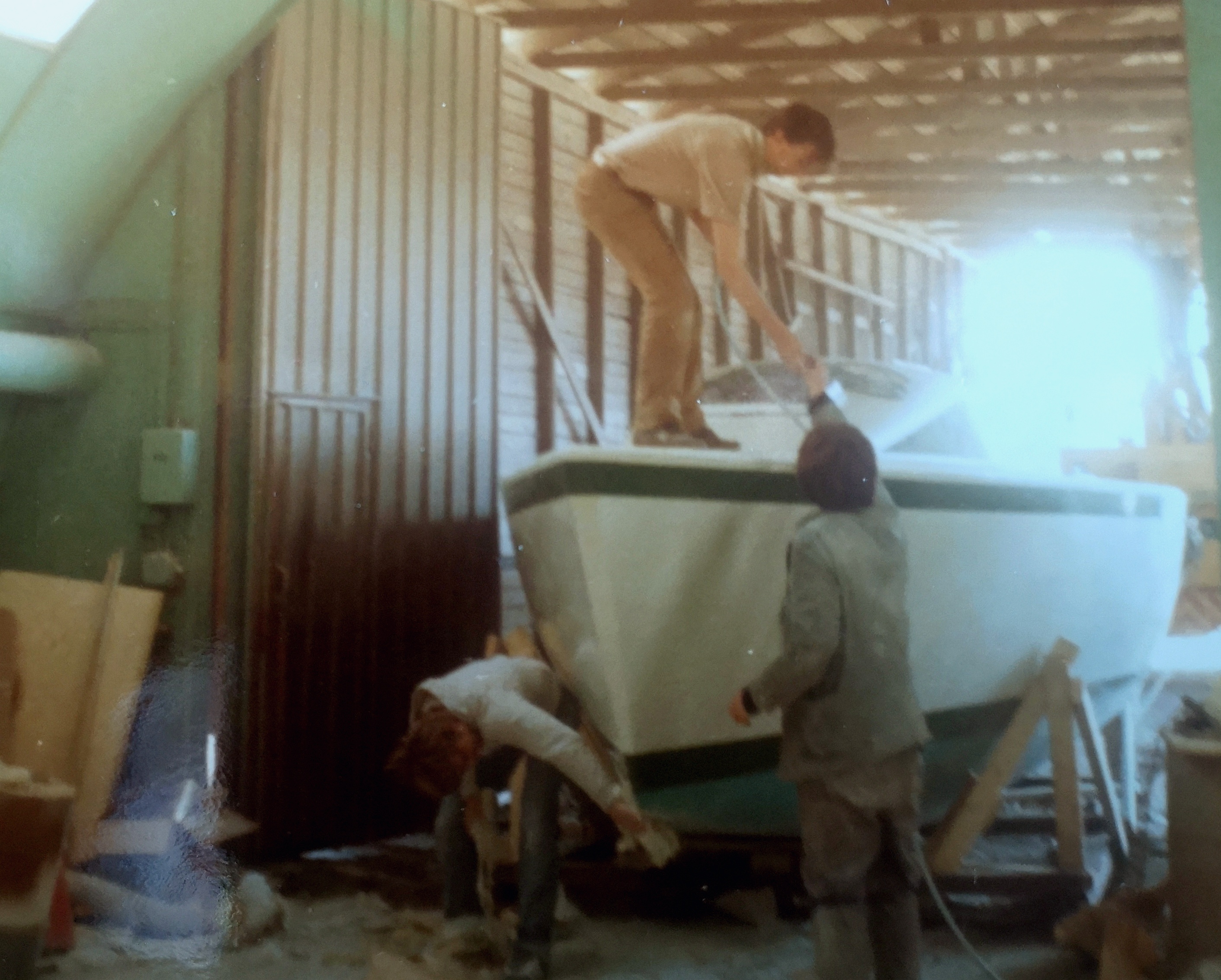 We also manufactured our Fram Dinghy to fill our spare time, plus all kinds of repairing works came to the yard in the winter months. Remembering old bootleggers speedboat repair and one interesting hydro copter modification project in fiberglass.