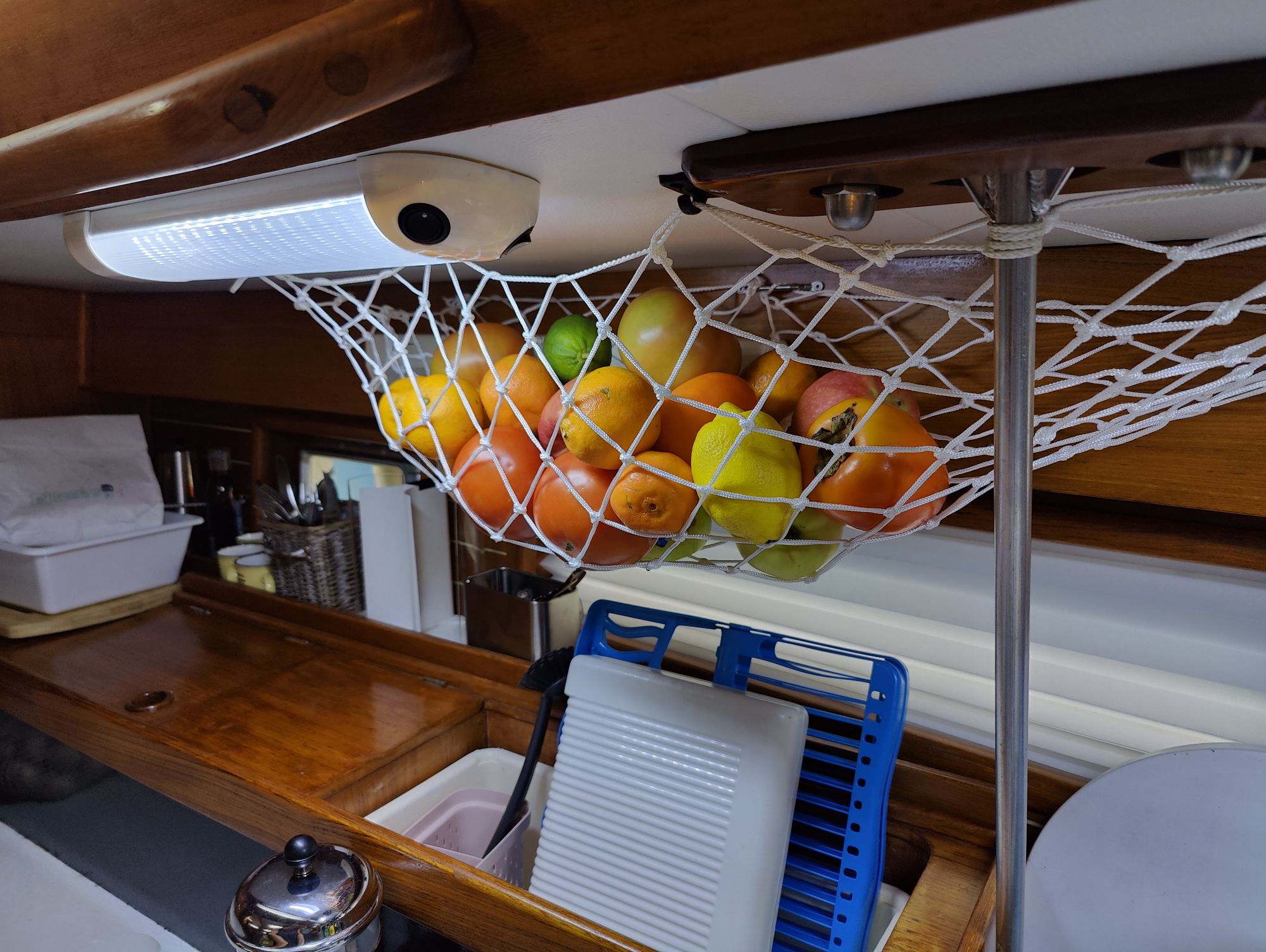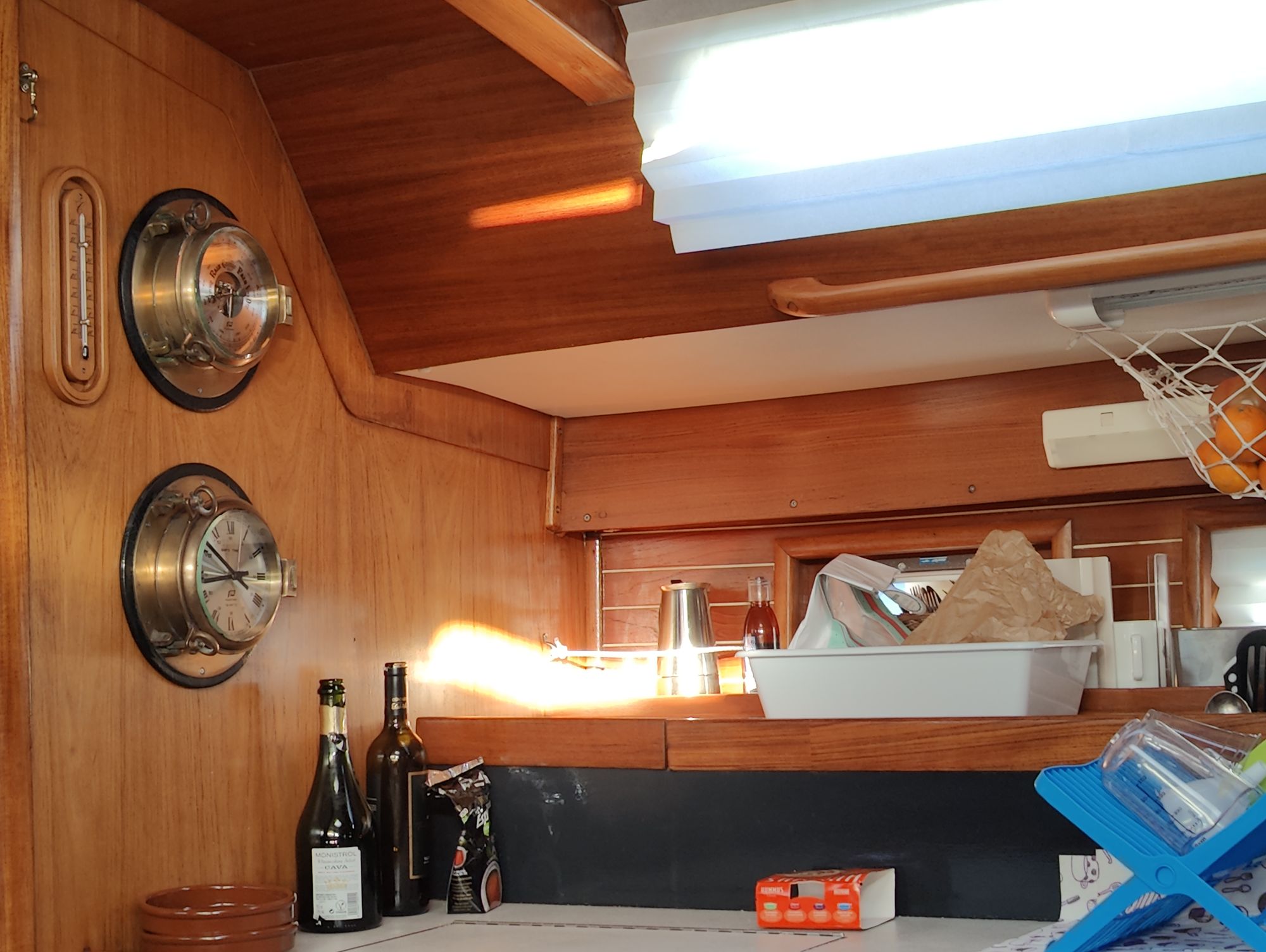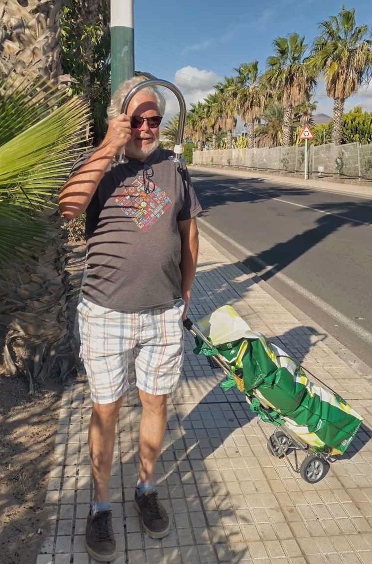New day dawn, the crew of Nauta on a shopping tour for food and some Inox materials from a company in Chafiras. This time by foot 2,5 hours and one coffee pause in a nice Coffee shop El Nino, Chafiras China Town. We found at last the land lubbers fresh food market in Chafiras, open from 2 pm. till 6 pm. Really good looking vegetables if you compare even to the best Mercadona here. When you pack the food clever the temperature stays cold even on an hour walking to the beach. I must thank my dear friend Baba for my excellent flight captains trolley, she brought from New York. It can carry up to 50 kg and climb the stairs or elevations on the pavements.