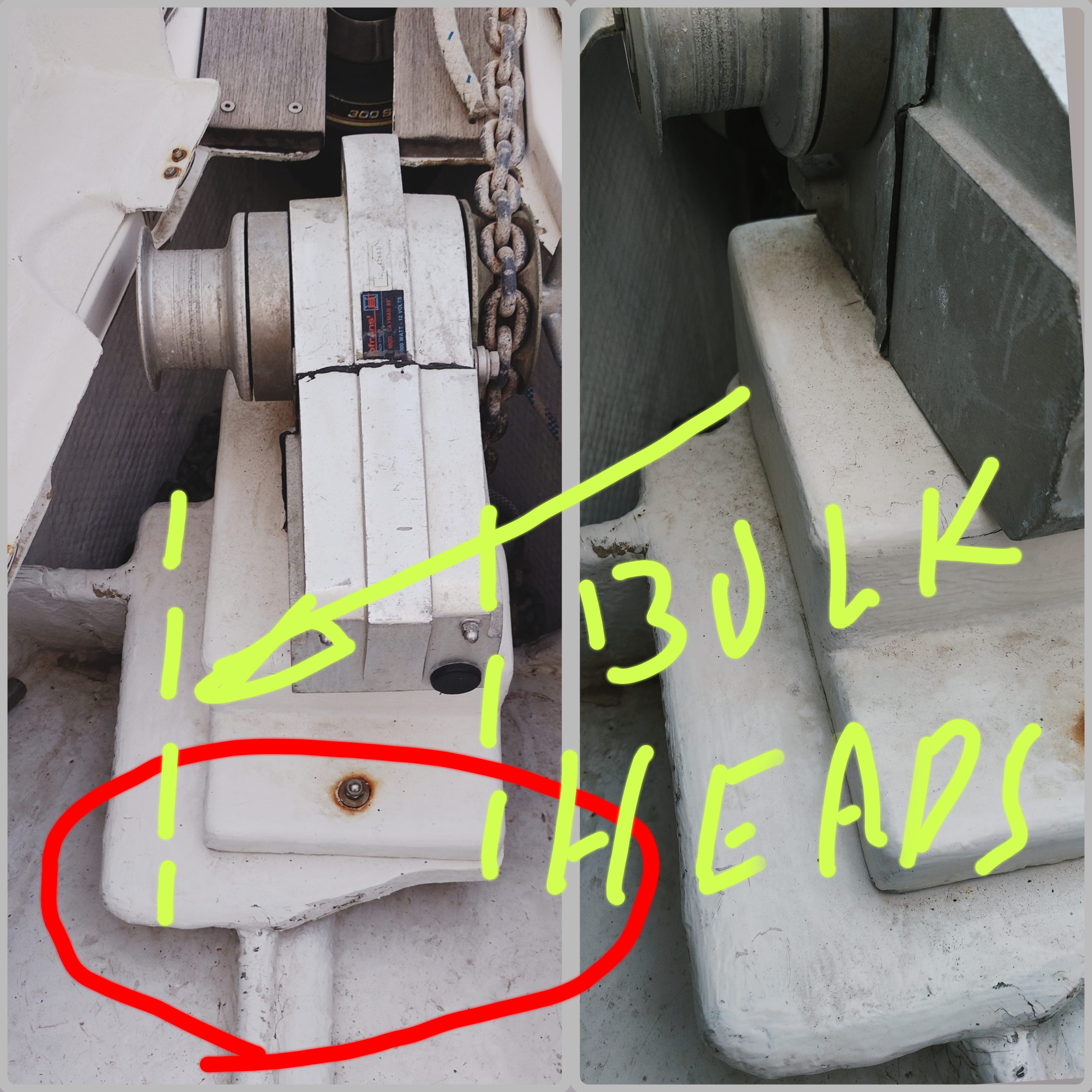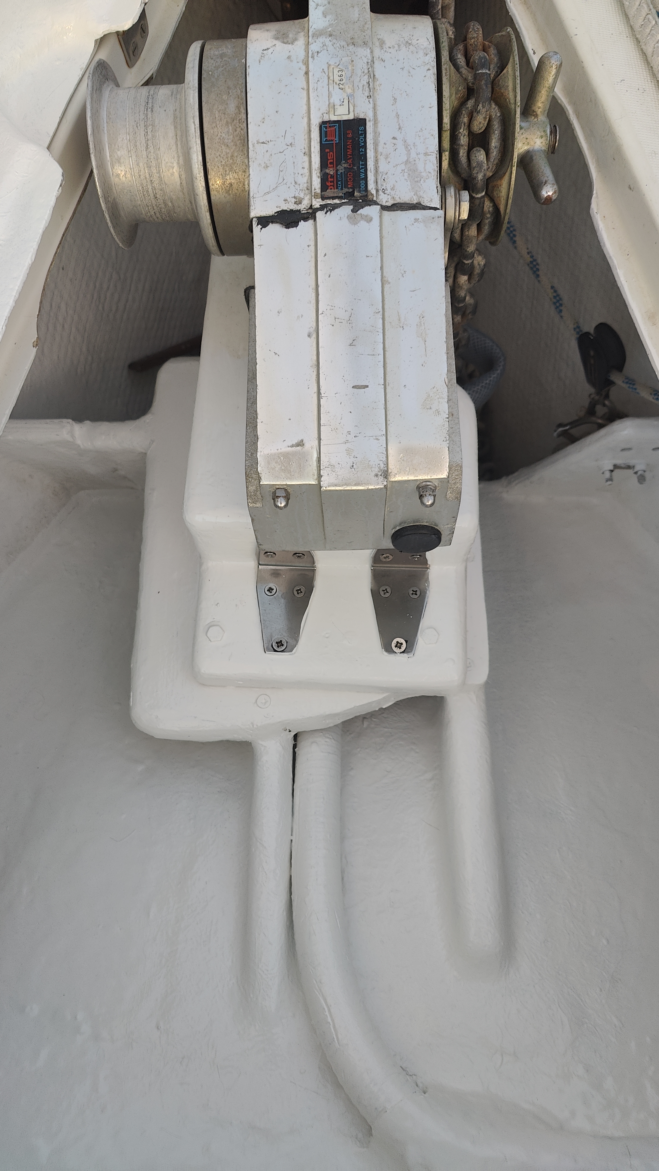 This was the beginning, looked nice but the powerful Lofran 1000 Anchor windlass was pulling itself out of the boat. The fiberglass work was very bad, under dimensioned and done without planning the loads and directions of pulling force’s