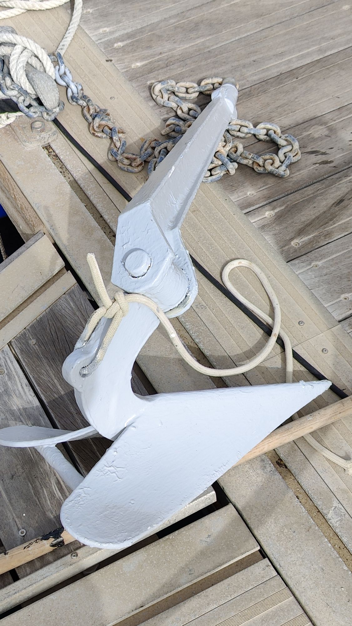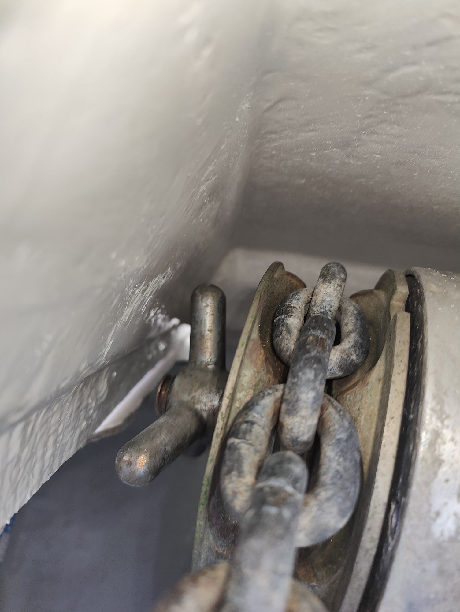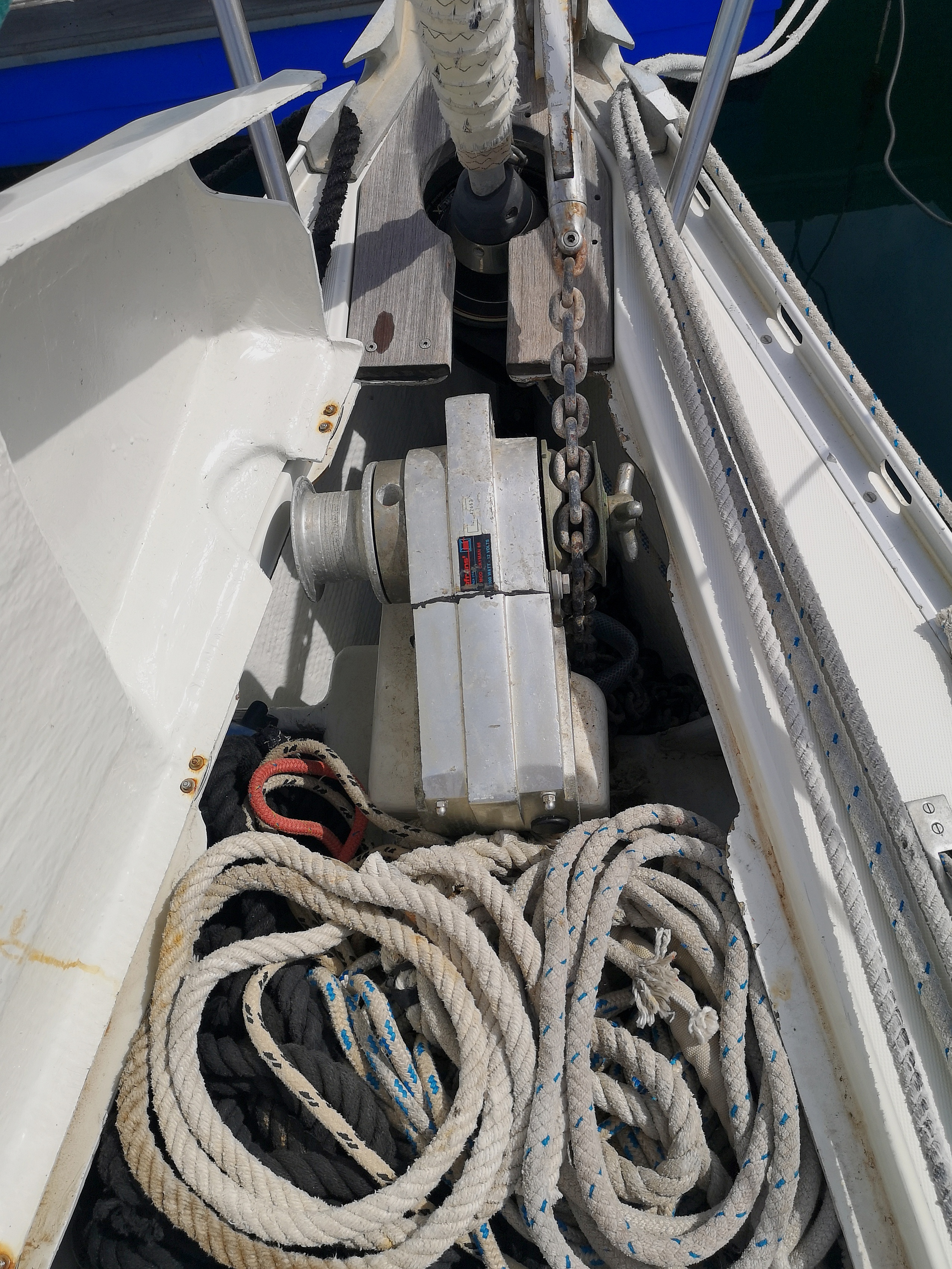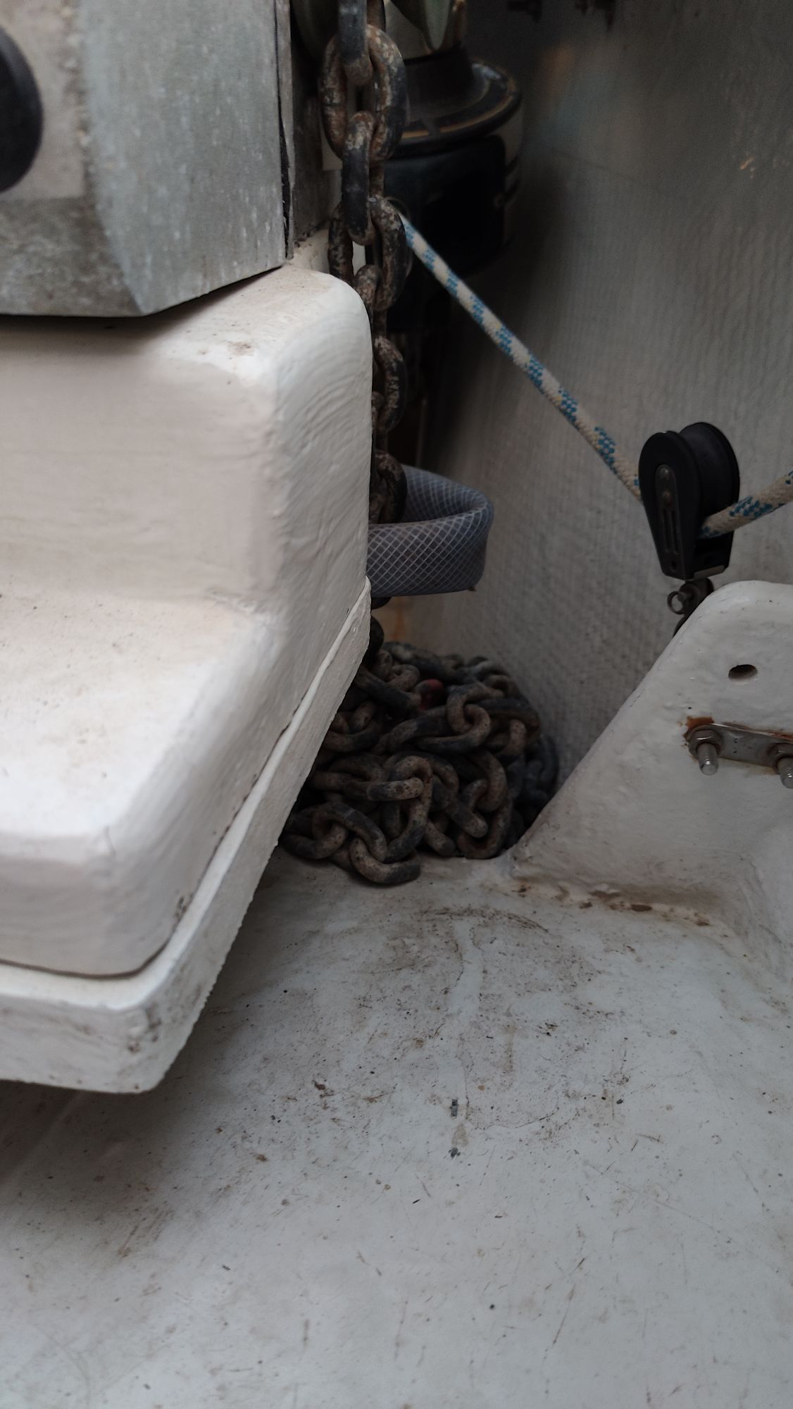 Anchor is painted three times with metal paints and epoxy. Anchor hinge is cleaned and is working properly. The essential chain stopper is bolted to deck Red markings in 3 m intervals in anchor chain. Anchor box cleaned properly, small laminated plywood on the bottom to prevent chain soaking with salt water